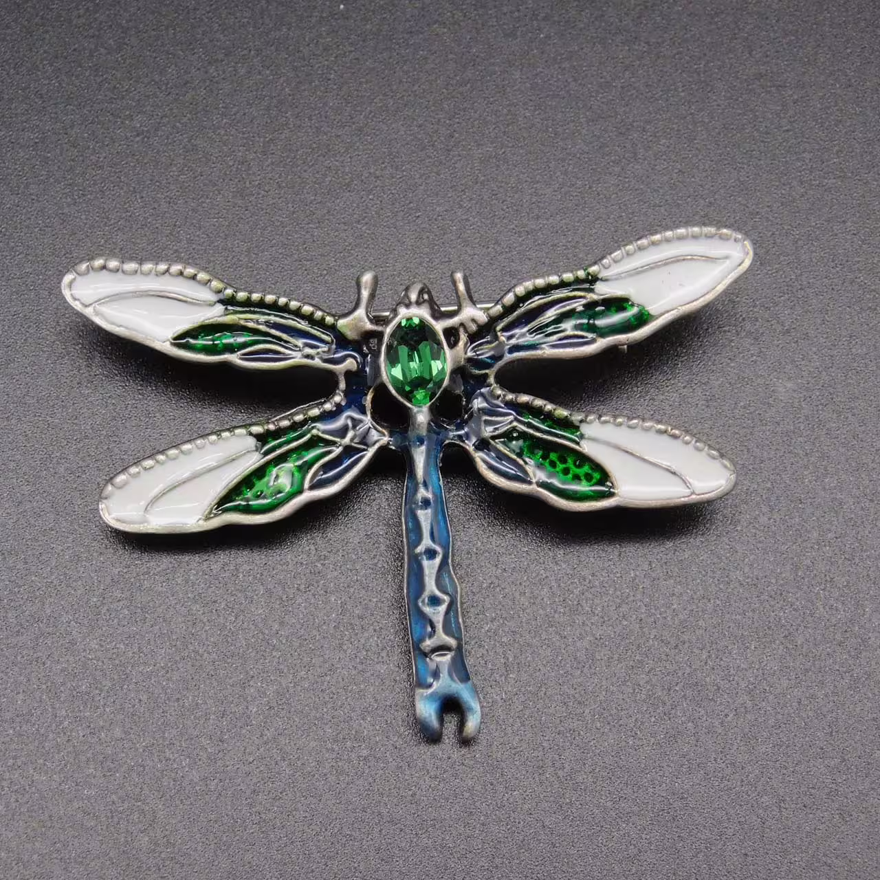 Upínací brož s motivem barevných ptáčků sedících na větvičce.